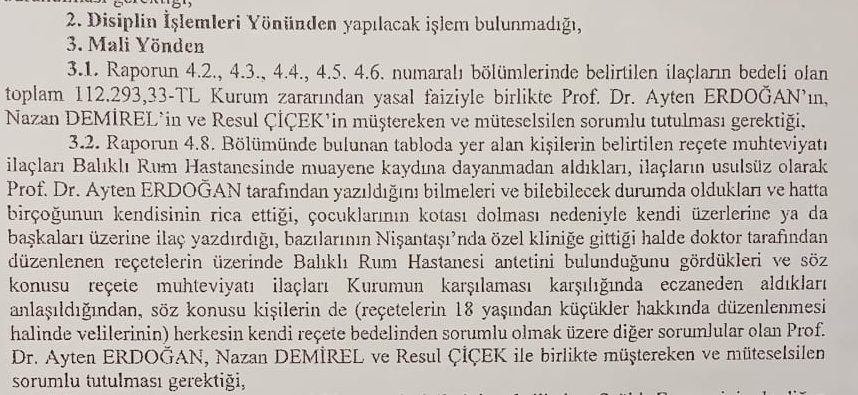 Tutuklanan Ayten Erdoğan hakkındaki müfettiş raporunda 112 bin 293 TL’lik zarar tespit edildiği ortaya çıktı.