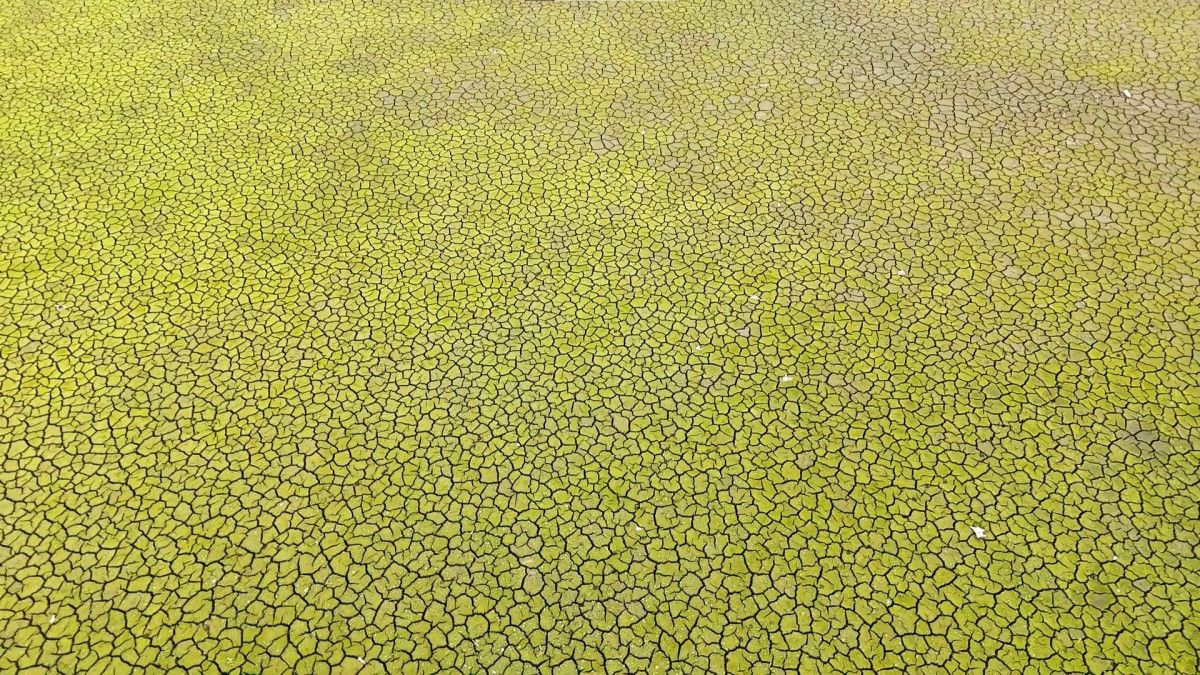 Ömerli Barajı’ndaki su seviyesinin düşüşü ve kuraklığın son hali, havadan çekilen karelere yansıdı.